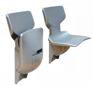 Lochblechsitz mit automatisch klappbarer Rückenlehne